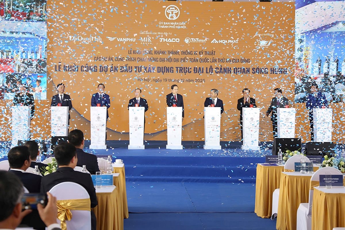 Sáng ngày 19/12/2025, tại phường Phú Thượng, Liên danh các Nhà đầu tư Đại Quang Minh - Văn Phú - MIK Group - Thaco - T&T Group - Tập đoàn Hòa Phát đã tổ chức Lễ khởi công Dự án Đầu tư xây dựng Trục Đại lộ Cảnh quan sông Hồng dưới sự chỉ đạo của UBND TP. Hà Nội.