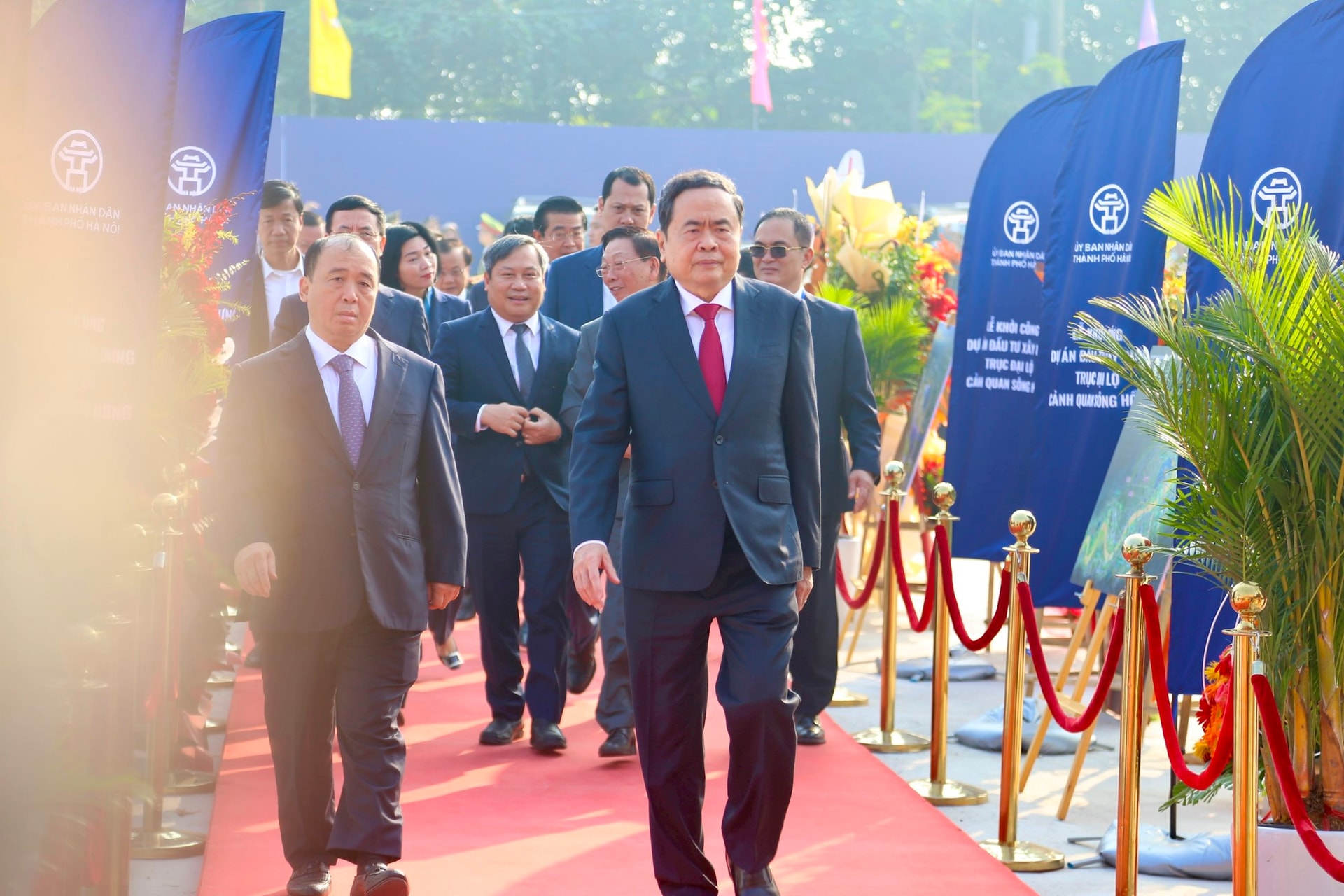 Chủ tịch Quốc hội Trần Thanh Mẫn tới dự Lễ khởi công Dự án đầu tư xây dựng Trục Đại lộ cảnh quan sông Hồng.