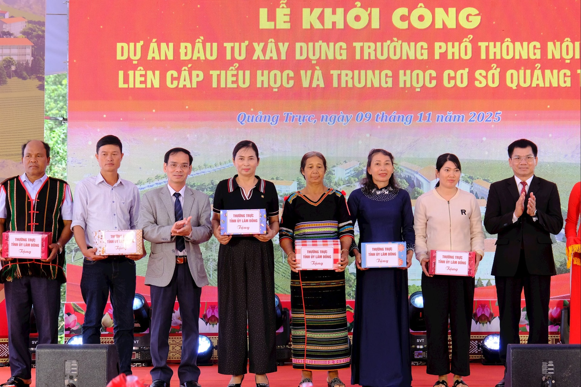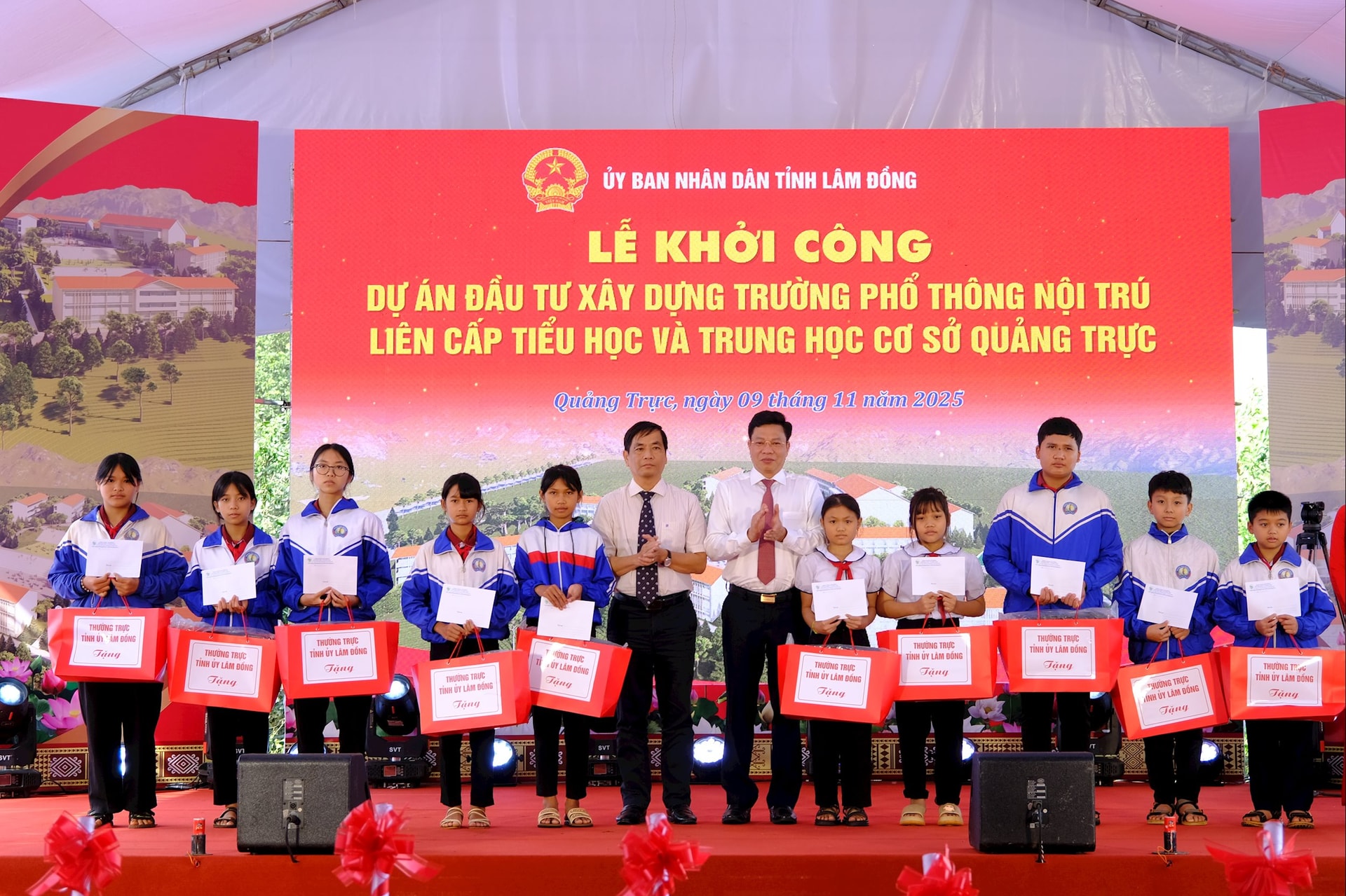 Phát biểu tại Lễ khởi công, đồng chí Lưu Văn Trung, Phó Bí thư Tỉnh ủy Lâm Đồng nhấn mạnh, đây là công trình có ý nghĩa chính trị - xã hội đặc biệt, cụ thể hóa Kết luận số 81-KL/TW ngày 18/7/2025 của Bộ Chính trị về chủ trương đầu tư xây dựng các trường PTNT liên cấp TH và THCS cho các xã biên giới, nhằm hoàn thành 100 trường trong năm 2025, góp phần nâng cao chất lượng giáo dục và chăm lo sự nghiệp “trồng người” ở vùng biên cương Tổ quốc.