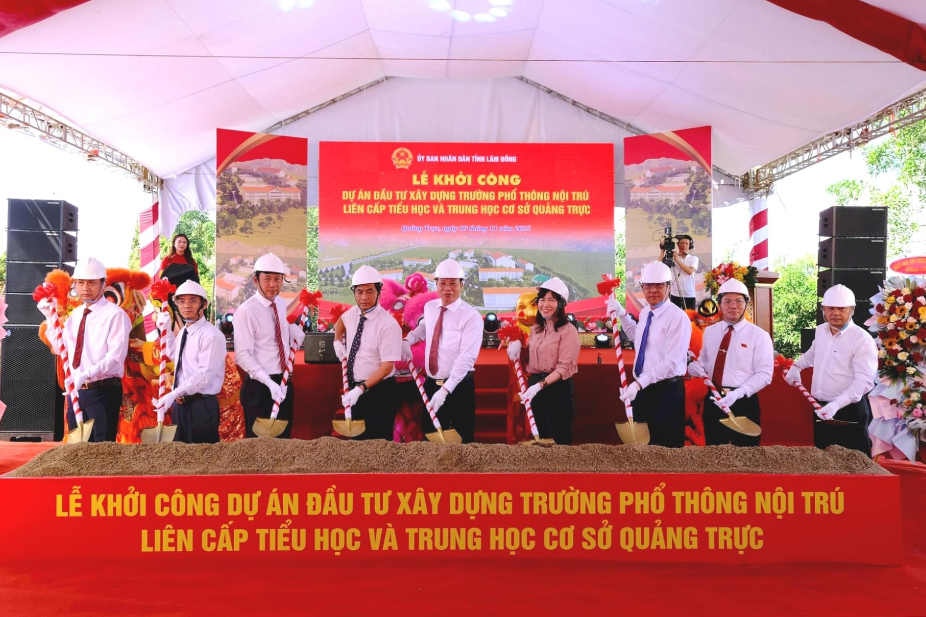 Lãnh đạo tỉnh, chính quyền địa phương thực hiện nghi thức động thổ khởi công Dự án Trường phổ thông nội trú liên cấp TH và THCS Quảng Trực