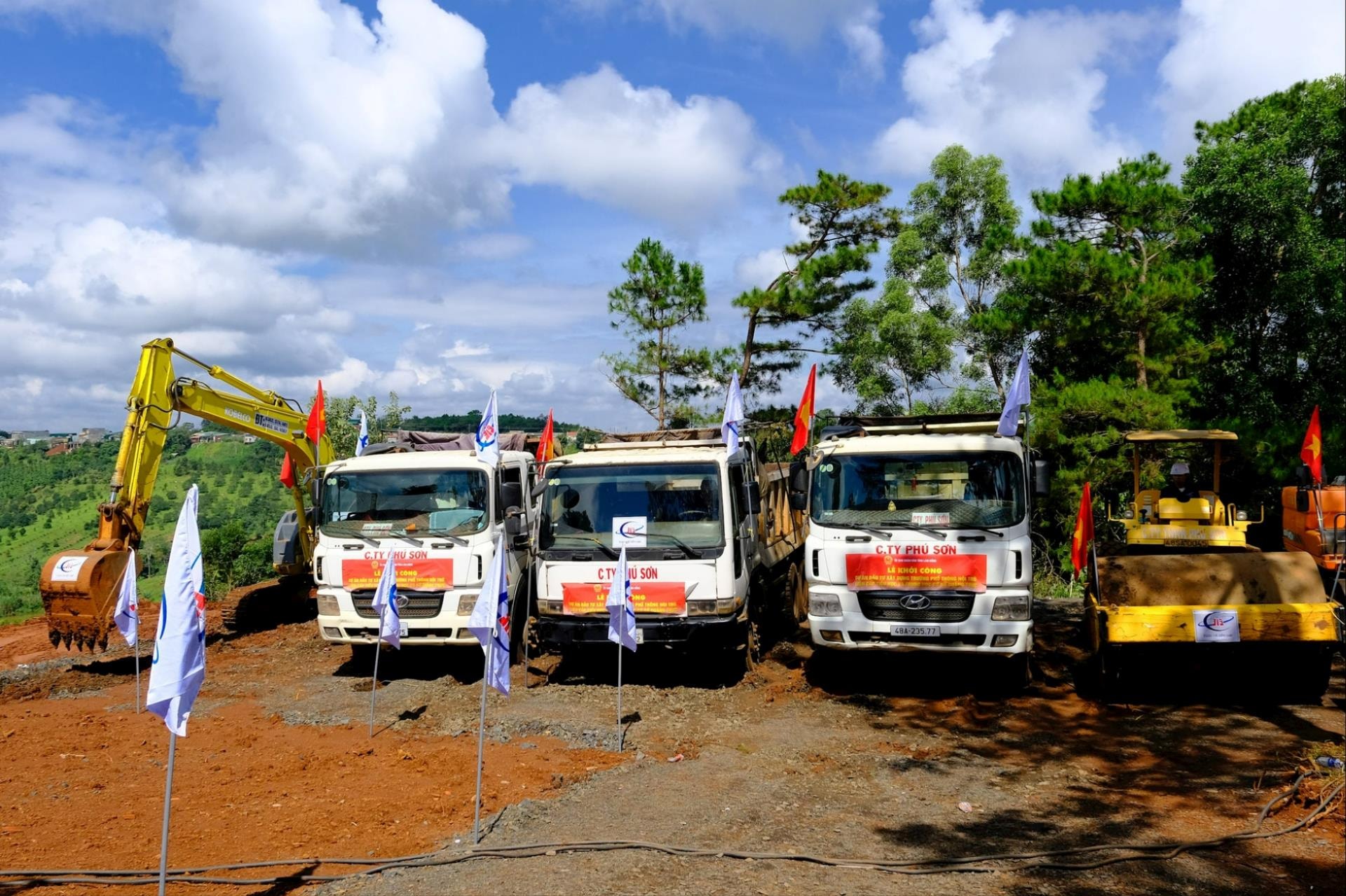 Máy móc, phương tiện tập kết, sẵn sàng thi công ngay sau lễ khởi công