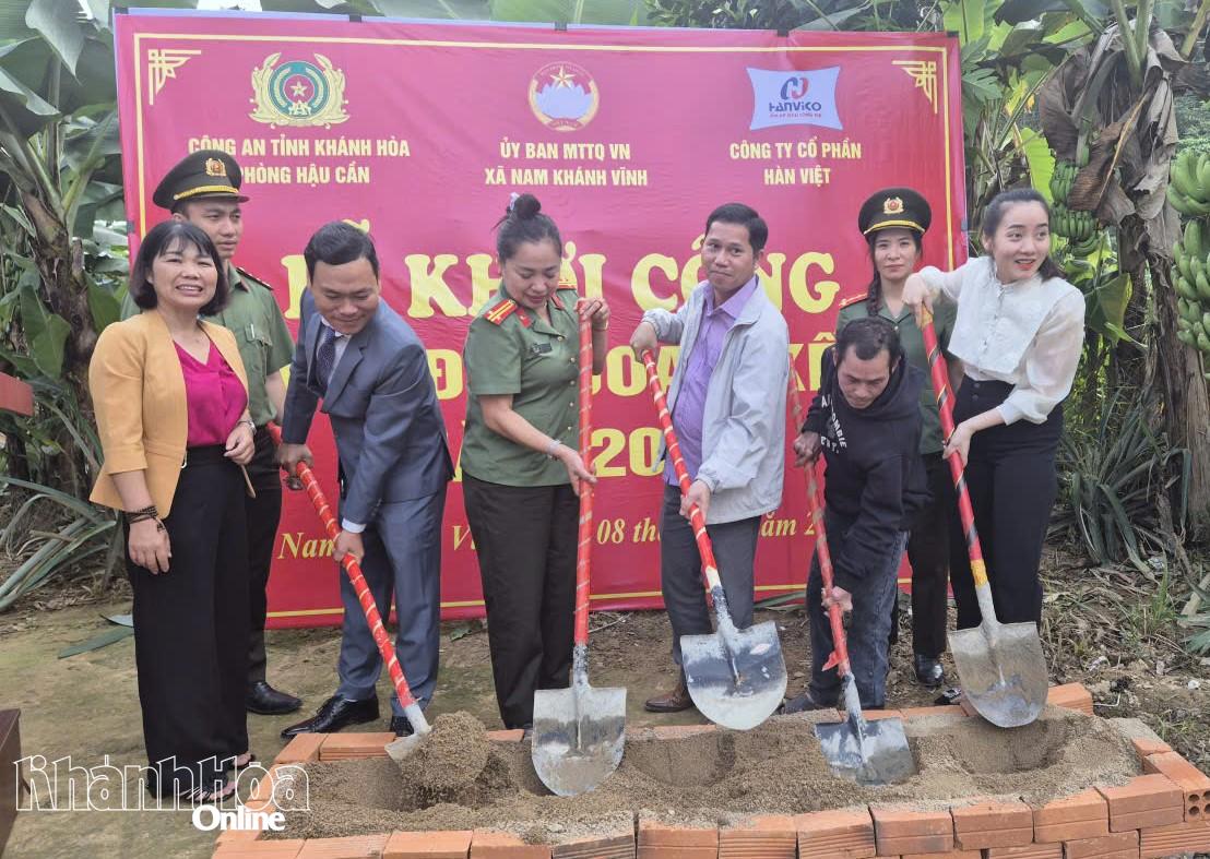 Ngày 8-1, Phòng Hậu cần, Công an tỉnh Khánh Hòa phối hợp với Ủy ban MTTQ Việt Nam xã Nam Khánh Vĩnh và Công ty Cổ phần Hàn Việt tổ chức lễ khởi công xây dựng nhà Đại đoàn kết tặng gia đình ông Cao Năng (thôn Bầu Sang, xã Nam Khánh Vĩnh).