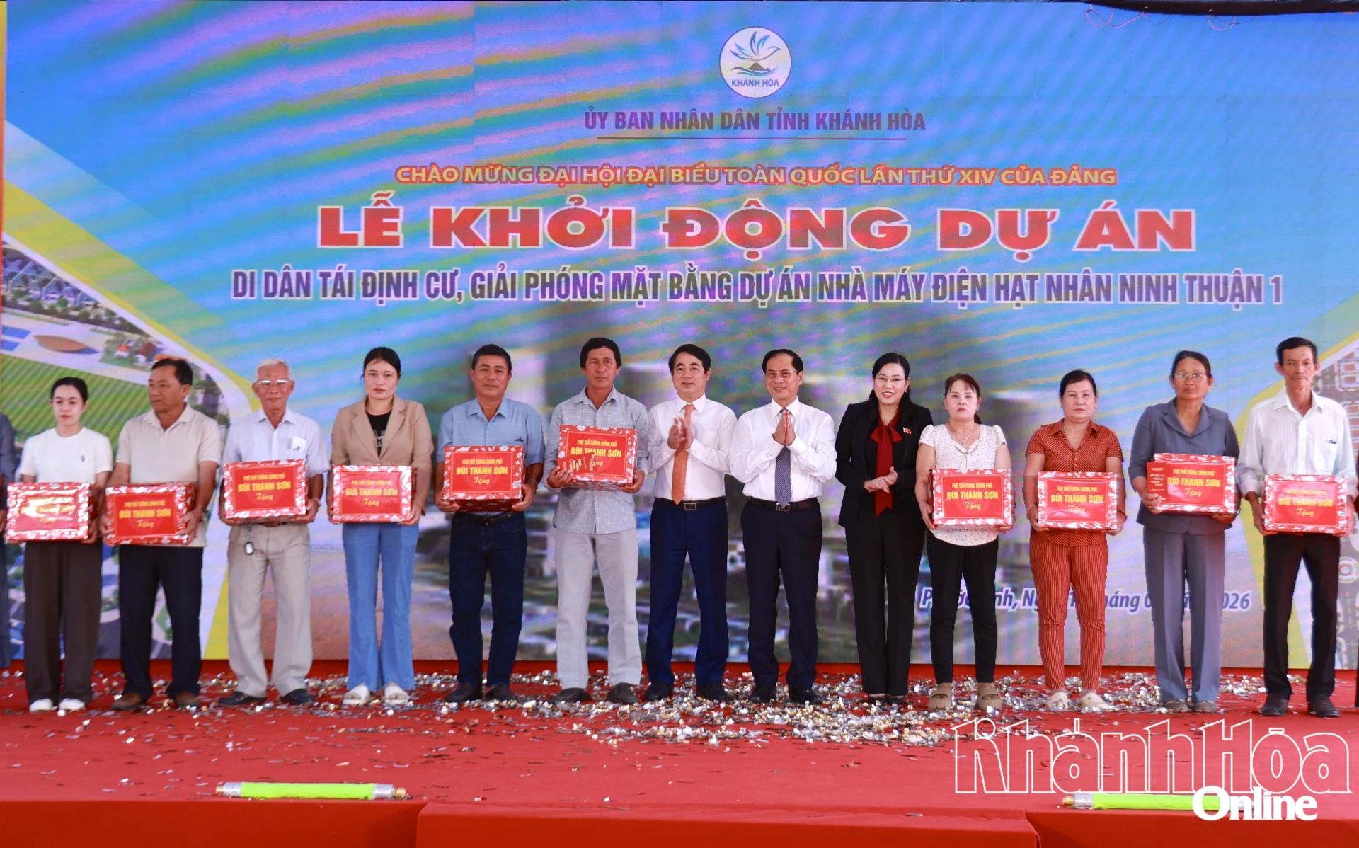 Sáng 15-1, tại xã Phước Dinh, UBND tỉnh Khánh Hòa tổ chức Lễ khởi động Dự án Di dân, tái định cư, giải phóng mặt bằng Nhà máy điện hạt nhân Ninh Thuận 1. Dự lễ có các đồng chí: Bùi Thanh Sơn - Ủy viên Trung ương Đảng, Phó Thủ tướng Chính phủ; Nguyễn Thanh Hải - Ủy viên Trung ương Đảng, Ủy viên Ủy ban Thường vụ Quốc hội, Chủ nhiệm Ủy ban Khoa học, Công nghệ và Môi trường của Quốc hội; lãnh đạo các bộ, ngành Trung ương. Về phía tỉnh có các đồng chí: Nghiêm Xuân Thành - Ủy viên Trung ương Đảng, Bí thư Tỉnh ủy; Trần Phong - Phó Bí thư Tỉnh ủy, Chủ tịch UBND tỉnh; Trịnh Minh Hoàng - Phó Chủ tịch UBND tỉnh; Đàng Thị Mỹ Hương - Phó Trưởng đoàn chuyên trách Đoàn Đại biểu Quốc hội tỉnh; lãnh đạo các sở, ngành, địa phương và người dân trong vùng dự án.