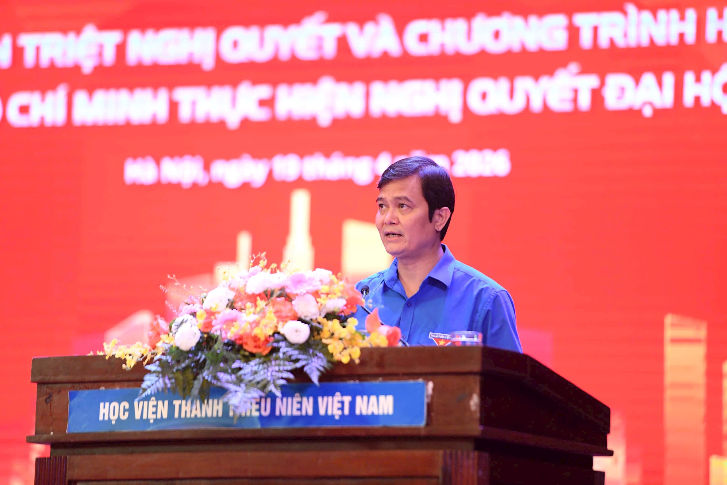 Bí thư Thường trực Trung ương Đoàn, Chủ tịch Trung ương Hội Sinh viên Việt Nam Nguyễn Minh Triết phát biểu. Ảnh: Phạm Trường