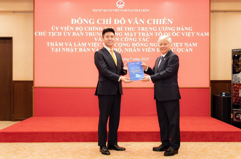 Ông Nguyễn Duy Anh trong lần gặp ông Đỗ Văn Chiến, Ủy viên Bộ Chính trị, Bí thư Trung ương Đảng, Chủ tịch Ủy ban Trung ương Mặt trận Tổ quốc Việt Nam sang thăm Nhật Bản hồi tháng 7/2025. (Ảnh do nhân vật cung cấp)