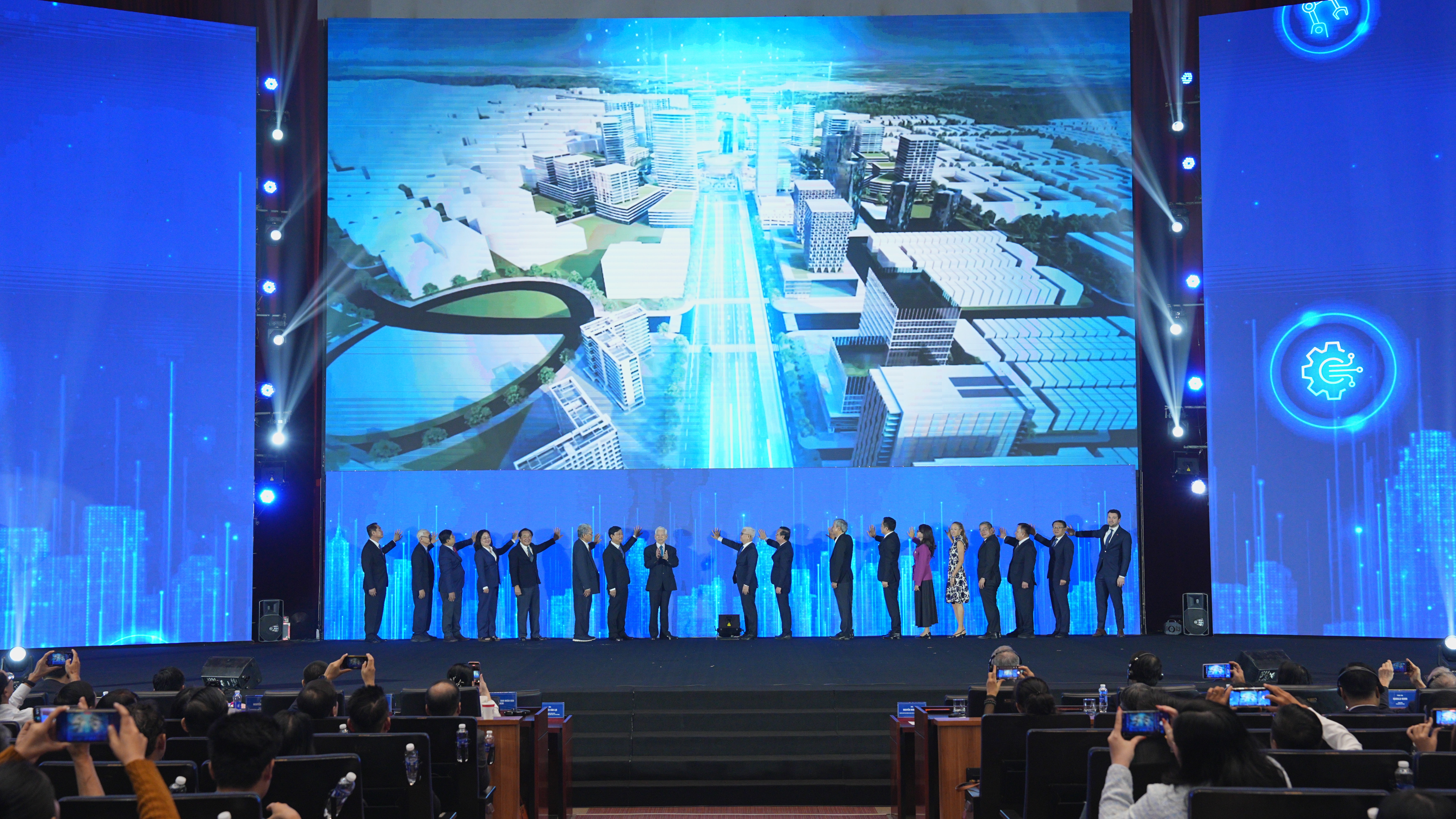 Nguyên Chủ tịch nước Nguyễn Minh Triết và các lãnh đạo TP. Hồ Chí Minh, các đại biểu khách mời, nhà đầu tư công bố Đô thị khoa học công nghệ Bắc TP. Hồ Chí Minh