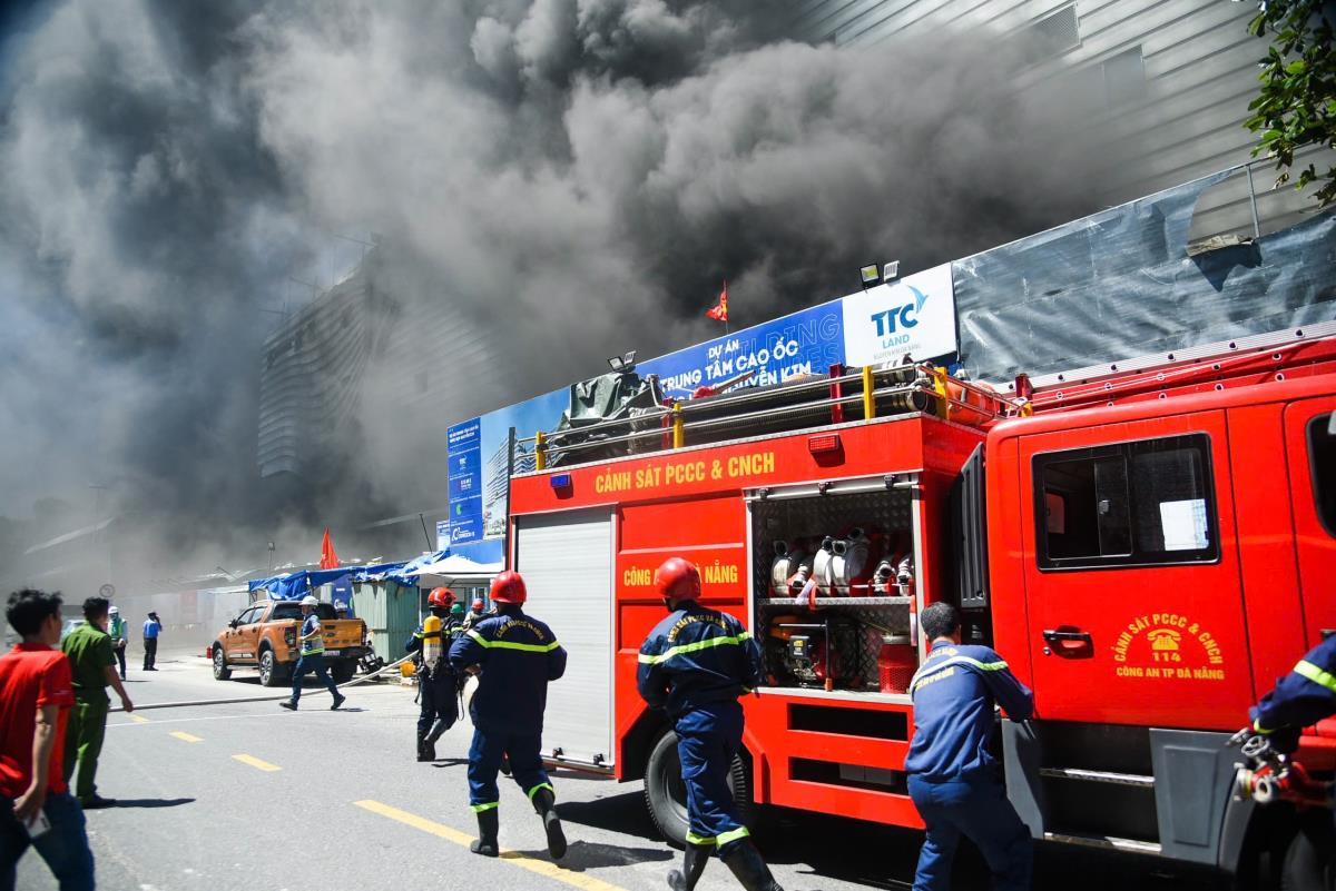 Ngay khi nhận tin báo, Phòng Cảnh sát PCCC và CNCH Công an TP Đà Nẵng đã điều động nhiều xe chữa cháy chuyên dụng cùng hàng trăm cán bộ, chiến sĩ nhanh chóng đến hiện trường triển khai dập lửa.