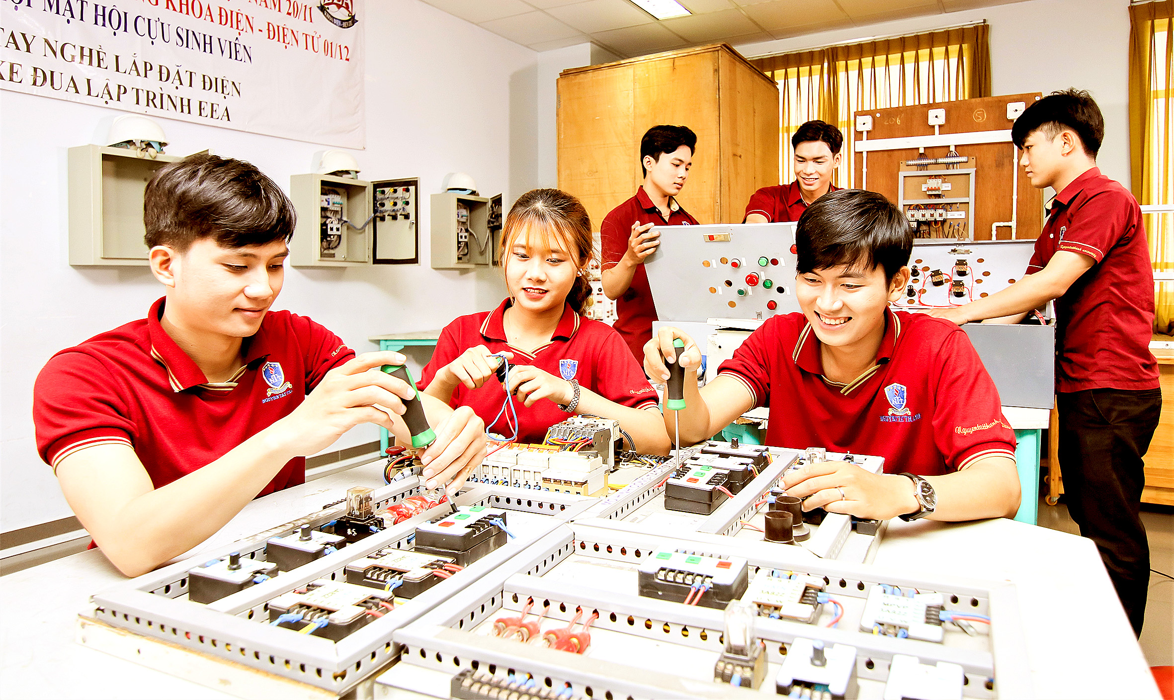 Sinh viên ngành Điện - Điện tử Trường Đại học Nguyễn Tất Thành trong giờ học thực hành