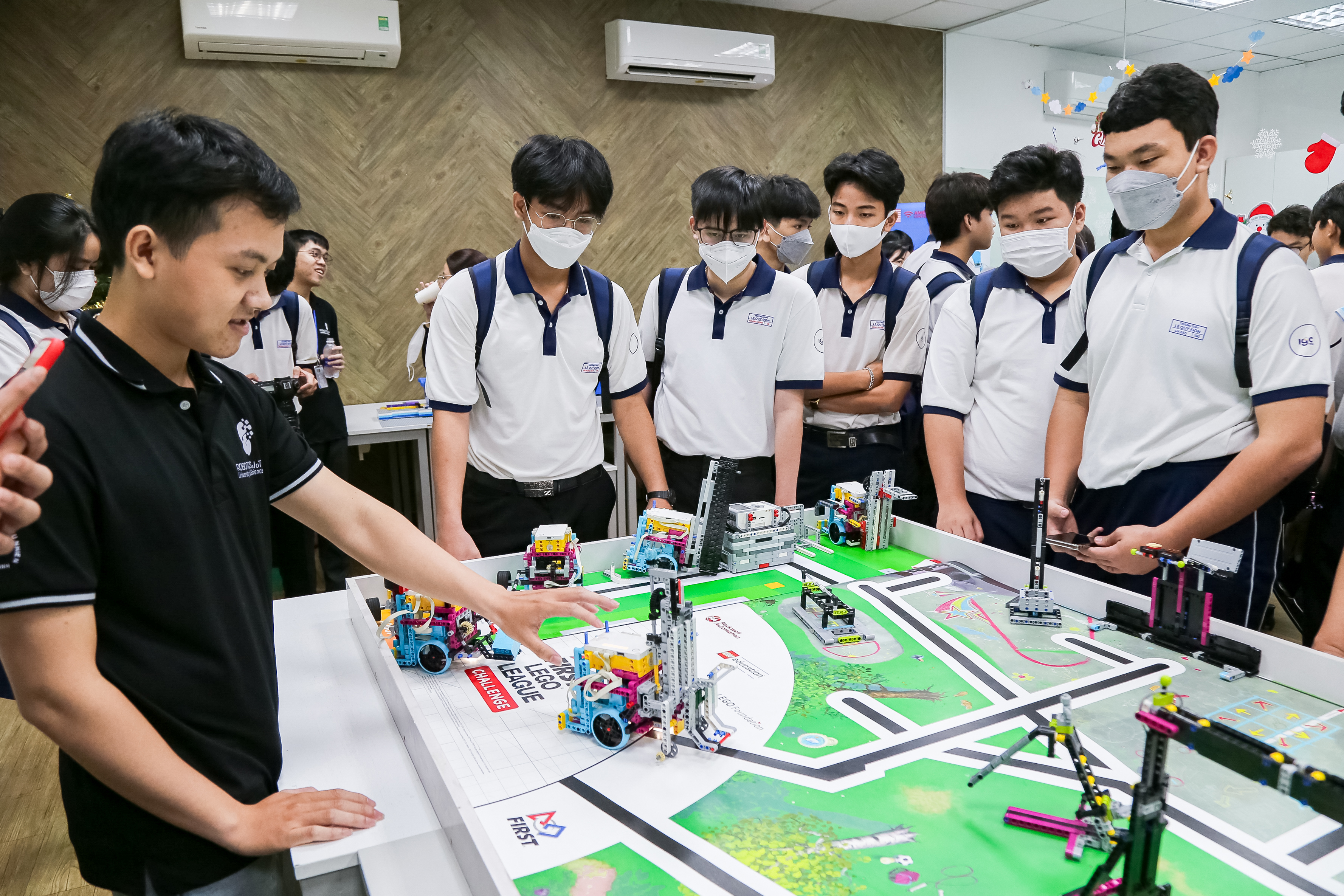 Học sinh tham quan câu lạc bộ Robotics của Trường Đại học Khoa học Tự nhiên (Đại học Quốc gia TPHCM)