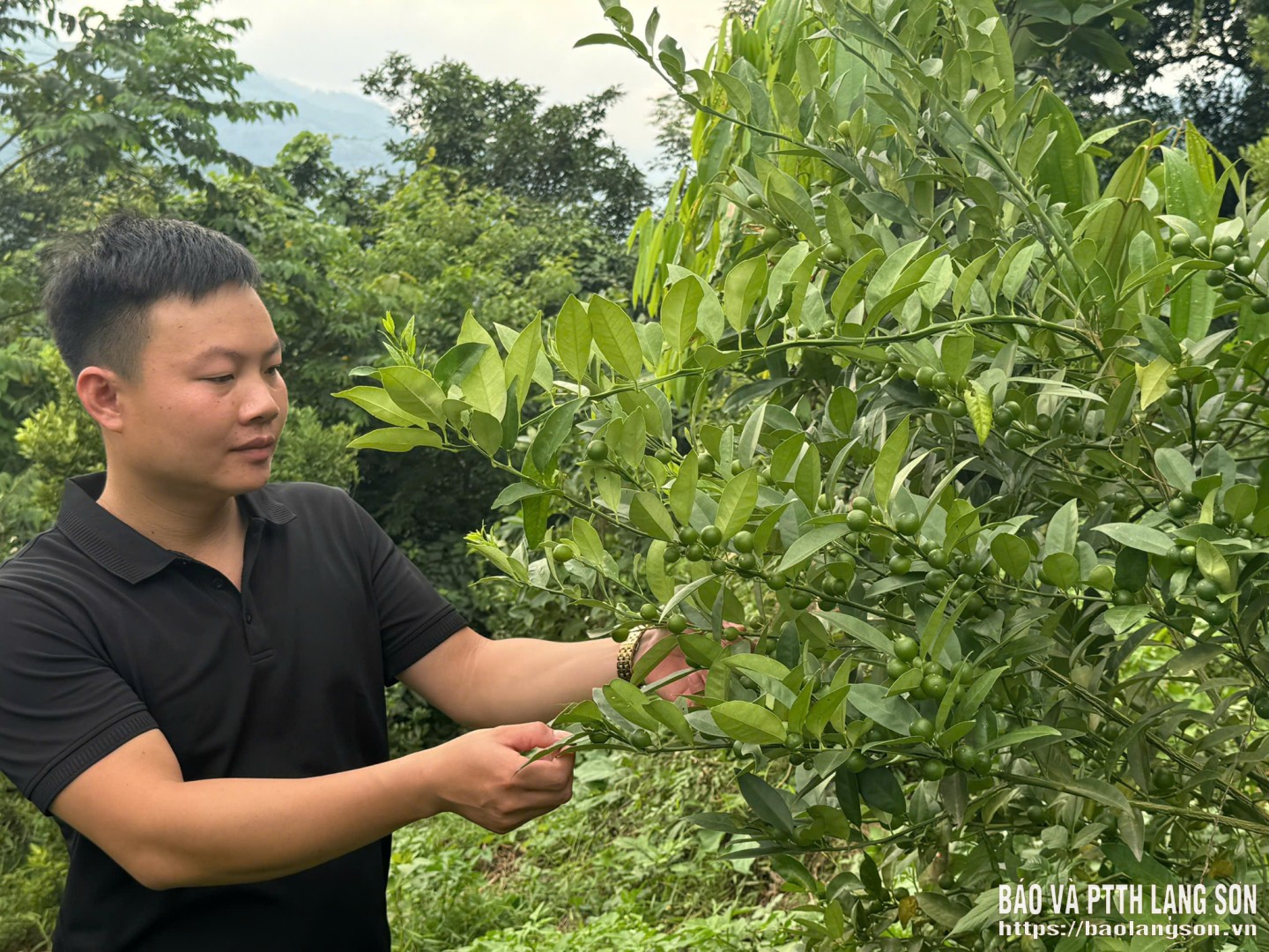 Anh Thắng kiểm tra cây chanh rừng tại thôn Bó Pằm, xã Mẫu Sơn