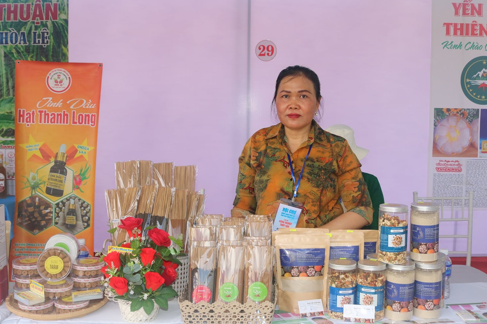 Chị Nguyễn Thị Lệ bên quầy trưng bày nhang sạch Lệ Duyên
