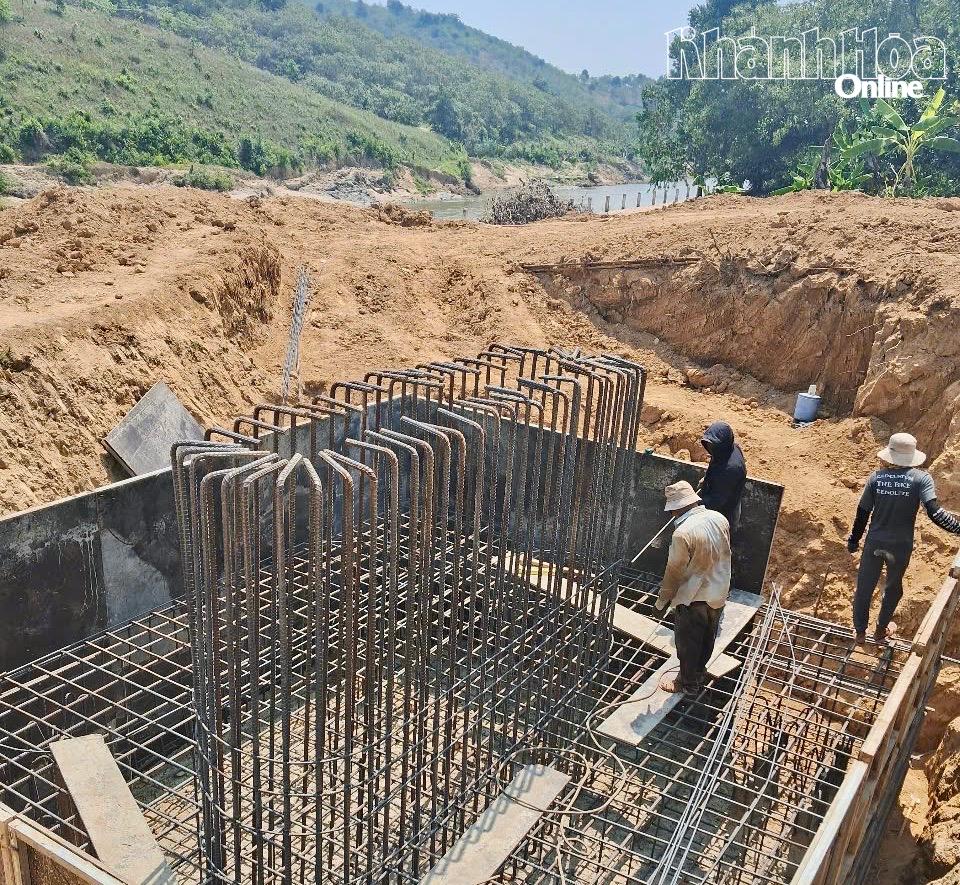Thi công mố cầu treo ở xã Nam Khánh Vĩnh.