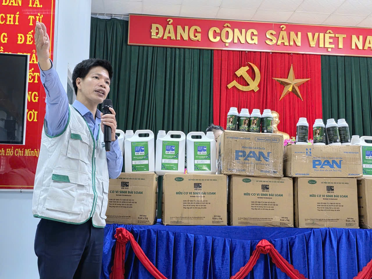 Tại buổi Tọa đàm, ban tổ chức đã trao tặng những phần vật tư thiết yếu giúp người dân nhanh chóng phục hồi sản xuất và ổn định đời sống gồm (chế phẩm sinh học, phân bón lá…)