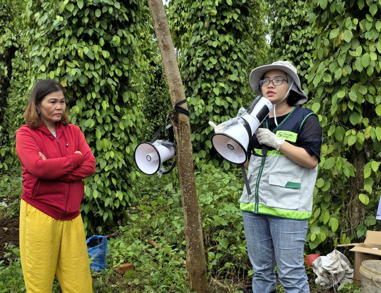 Tại vườn tiêu có diện tích 4 sào của bà Lê Thị Tuyết Anh (48 tuổi, người dân xã Sơn Thành, Đắk Lắk), nơi được chọn là vườn thực nghiệm, các chuyên gia đã hướng dẫn người dân cách xử lý khi nước lũ gây ngập úng vườn tiêu như mở rãnh quanh trụ tiêu để thoát nước, dùng vòi áp lực nhẹ rửa bùn trên lá, thân, các trụ nghiêng cần chống đỡ, dựng lại… sau đó phục hồi bộ rễ và xử lý nấm bệnh, tiếp đến là chăm sóc dinh dưỡng.