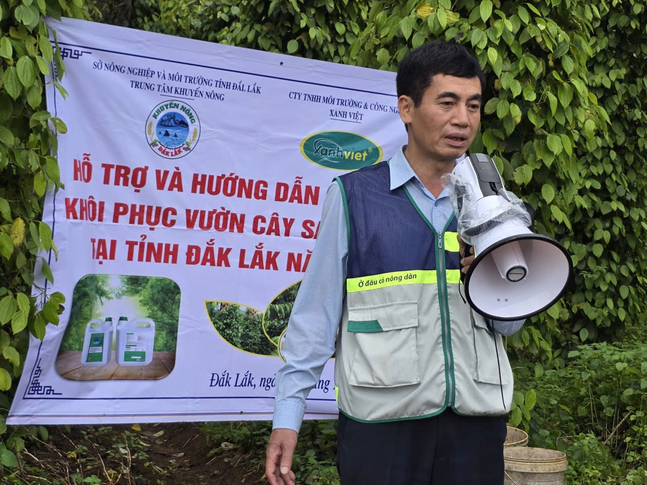 Căn cứ sự chỉ đạo của Trung tâm Khuyến nông quốc gia và Sở Nông nghiệp và Môi trường tỉnh, ngày 28.11, Trung tâm Khuyến nông tỉnh Đắk Lắk đã ban hành công văn về việc hỗ trợ và hướng dẫn kỹ thuật khôi phục vườn cây bị ngập úng bằng chế phẩm sinh học hữu cơ VM-503