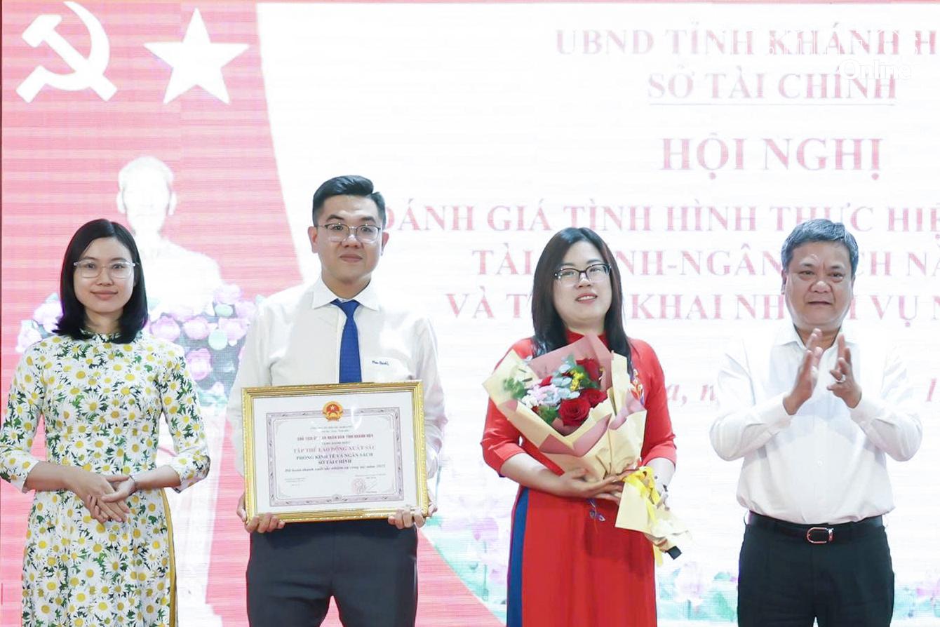 Đồng chí Trần Phong tặng bằng khen của UBND tỉnh cho tập thể Phòng Kinh tế và Ngân sách (Sở Tài chính). Ảnh: C.Định