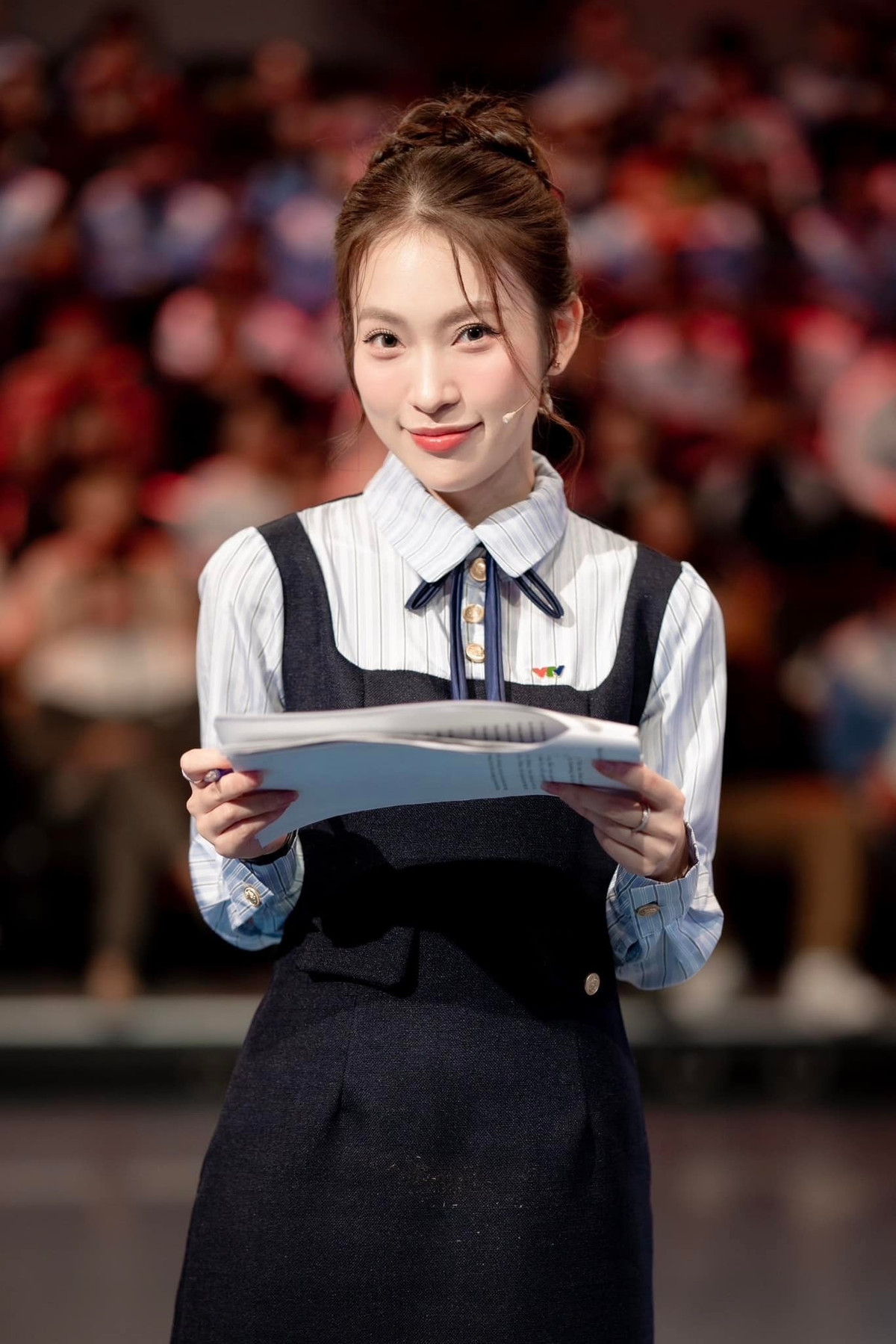 Khánh Vy tốt nghiệp loại giỏi ngành Quan hệ quốc tế tại Học viện Ngoại giao rồi bén duyên với truyền hình. Từ năm 2021, MC Khánh Vy trở thành gương mặt quen thuộc của chương trình “Đường lên đỉnh Olympia” trên VTV3. Ảnh: FB Khánh Vy