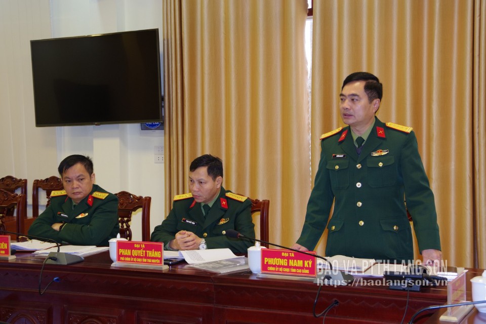 Đại diện Bộ CHQS tỉnh Lạng Sơn báo cáo kết quả thực hiện công tác thi đua khen thường và phong trào thi đua quyết thắng năm 2025