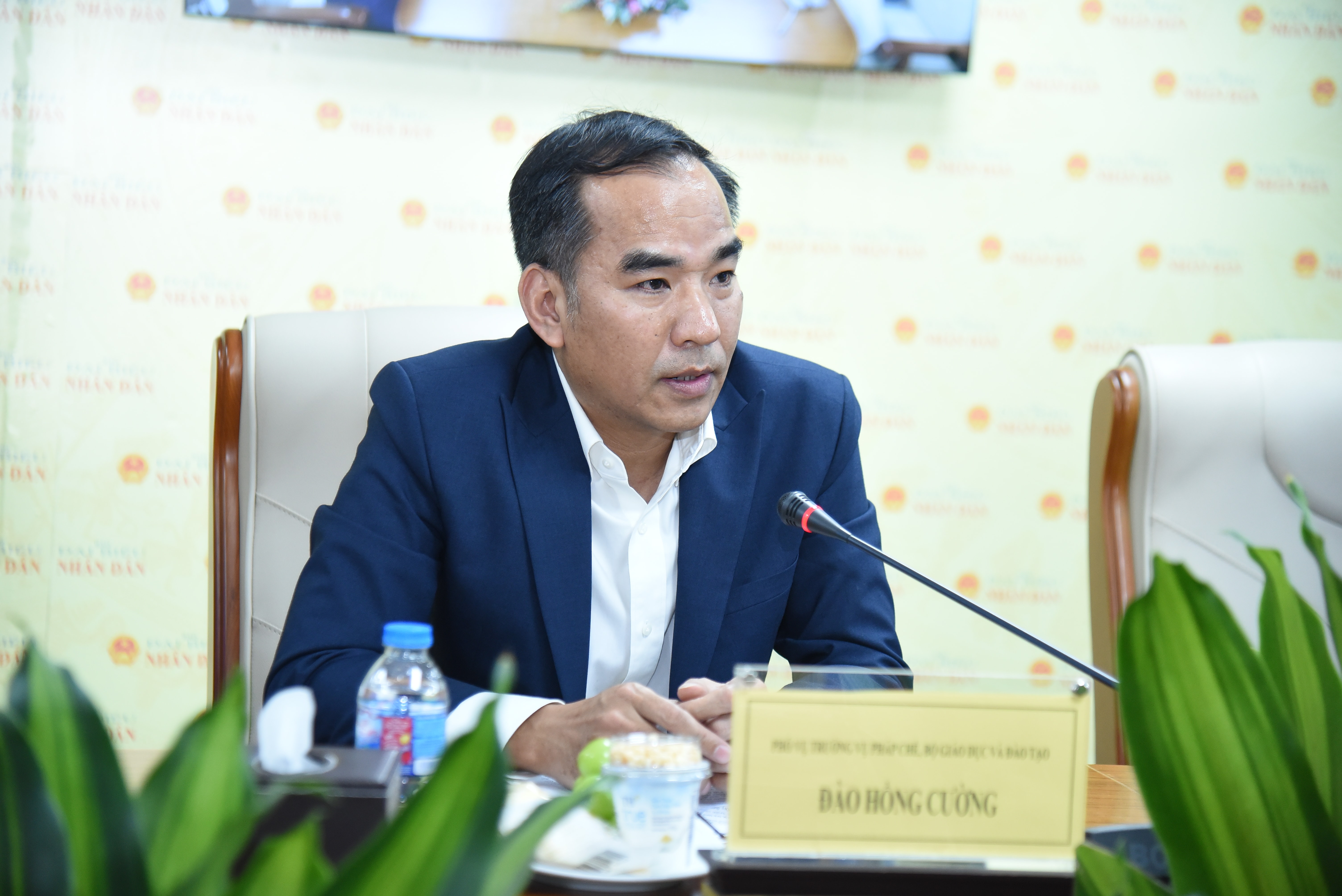 Phó Vụ trưởng Vụ Pháp chế, Bộ Giáo dục và Đào tạo Đào Hồng Cường phát biểu tại tọa đàm. Ảnh: Xuân Quý