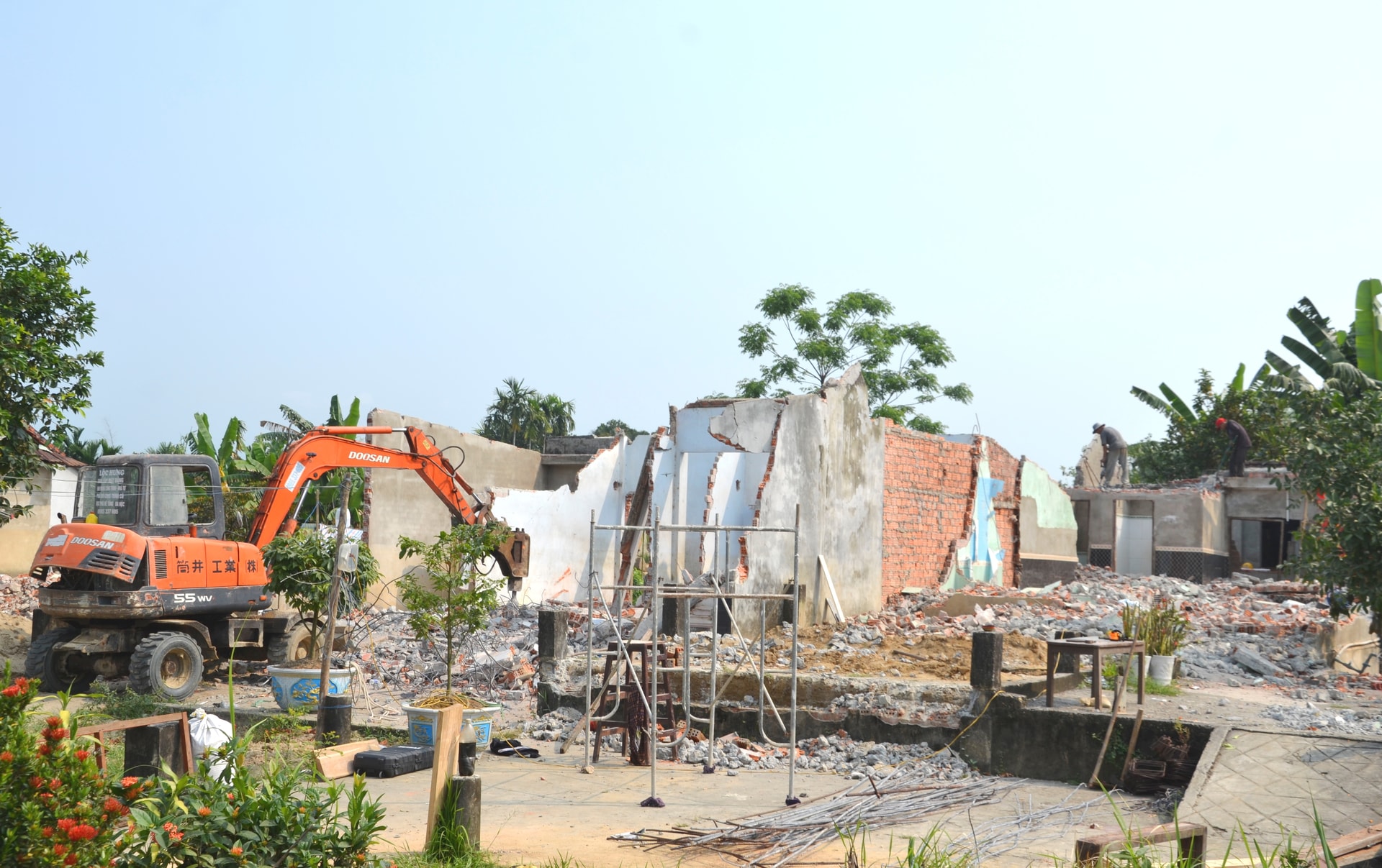 Người dân xã Vu Gia phá dỡ nhà cửa, vật kiến trúc vào sáng 2/4. Ảnh: CÔNG TÚ