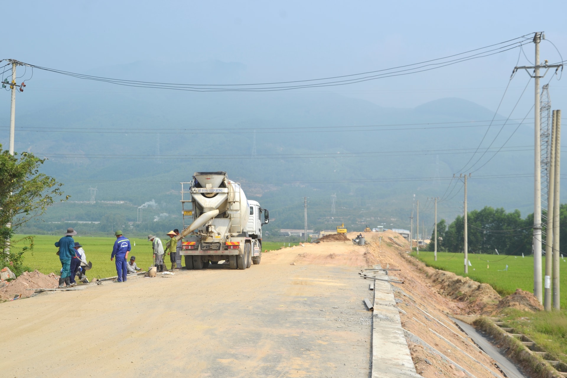 Thi công đoạn từ nút giao tuyến ĐT609 ra quốc lộ 14B (địa phận xã Hà Nha). Ảnh: CÔNG TÚ