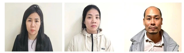 Các bị can (từ trái qua) Ngô Thị Lụa, Đoàn Thị Xuân, Vũ Quang Phúc. (Ảnh: Bộ Công an)