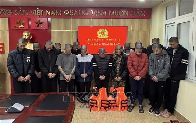 Nhóm thanh thiếu niên liên quan đến vụ hỗn chiến, rượt đuổi gây náo loạn Quốc lộ 10 (đoạn qua phường Yên Tử) vào rạng sáng 11/1/2026. Ảnh: TTXVN phát