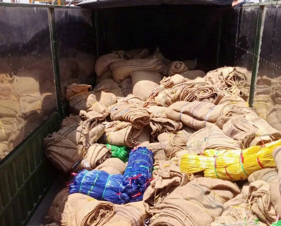 Hàng hóa được các tài xế dùng để nâng khống tải trọng xe. (Ảnh: Công an TP.HCM)