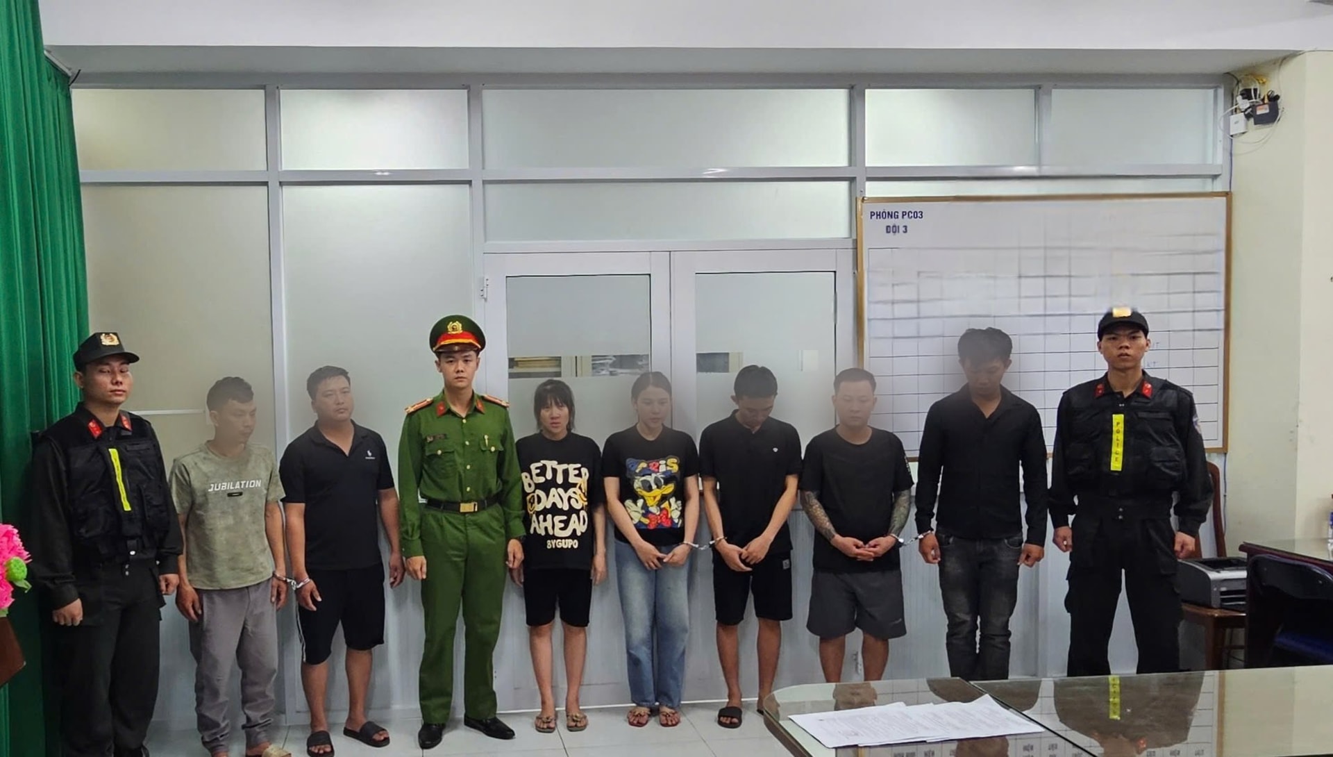 Các đối tượng bị Công an bắt giữ.