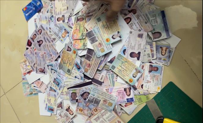 Các đối tượng đã làm giả giấy tờ tùy thân của nhiều người dân tại Việt Nam và các nước trên thế giới. Ảnh: TTXVN phát