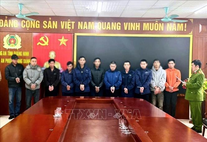 Cụ thể: 11 đối tượng bị khởi tố gồm: Phạm Cao Đà (sinh năm 1984, trú khu Xuân Sơn, phường Mạo Khê, tỉnh Quảng Ninh), Nguyễn Đình Hiển (sinh năm 1980, trú khu phố Pháp Chế, phường Bắc An Phụ, thành phố Hải Phòng), Nguyễn Văn Thịnh (sinh năm 1991, trú khu Đồng Dương, phường An Lạc, tỉnh Bắc Ninh), Lê Chí Cường (sinh năm 1980, trú thôn Tống Thượng, xã Nam An Phụ, thành phố Hải Phòng), Nguyễn Văn Hiền (sinh năm 1977, trú thôn Khả Tiến, xã Diên Hà, tỉnh Hưng Yên), Vũ Thanh Tuấn (sinh năm 1986, trú Tổ 1, khu Hiệp Thái, phường Yên Tử, tỉnh Quảng Ninh), Vũ Mạnh Hùng (sinh năm 1979, trú Tổ 1, khu Cửa Ngăn, phường Yên Tử, tỉnh Quảng Ninh), Đinh Văn Tuấn (sinh năm 1993, trú Khu phố 16, phường Hiệp Hòa, tỉnh Quảng Ninh), Hoàng Văn Chính (sinh năm 1987, trú Tràng An, phường Đông Triều, tỉnh Quảng Ninh), Nguyễn Văn Thanh (sinh năm 1970, trú Tổ 1, khu Vàng Danh 2, phường Vàng Danh, tỉnh Quảng Ninh), Nguyễn Văn Linh (sinh năm 1985, trú thôn Thanh Hà, xã Tây Yên Tử, tỉnh Bắc Ninh).