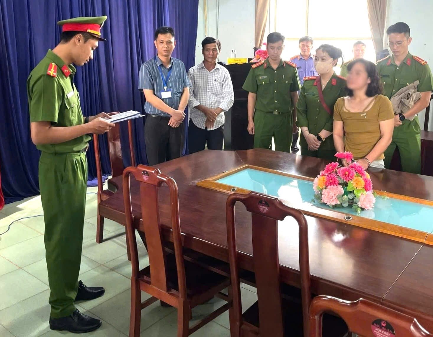 Cơ quan chức năng đọc Lệnh bắt tạm giam bị can Thúy để điều tra về hành vi “Lợi dụng các quyền tự do dân chủ xâm phạm lợi ích của Nhà nước, quyền, lợi ích hợp pháp của tổ chức, cá nhân”. (Ảnh: CA)