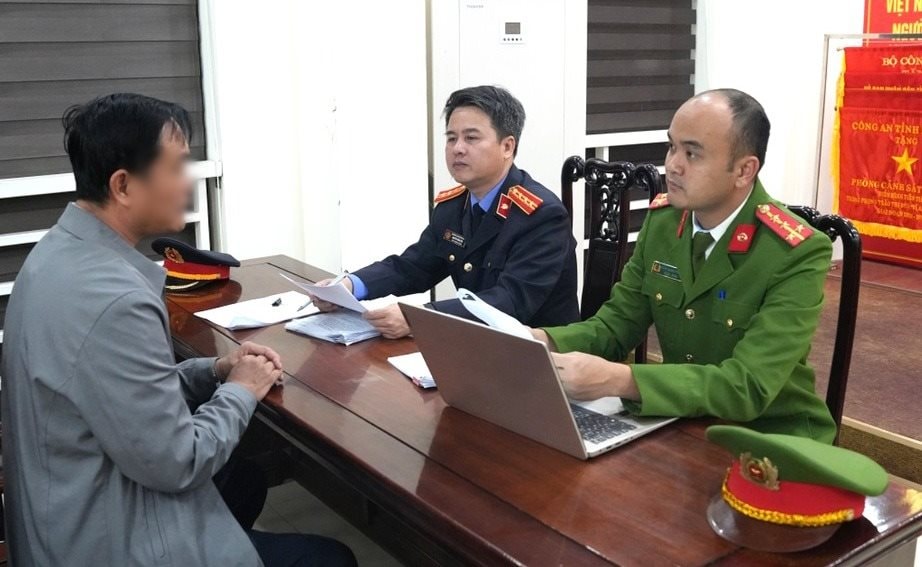 Đối tượng Vũ Sơn tại cơ quan Công an.