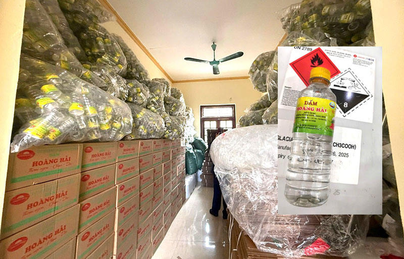 Quá trình khám xét, lực lượng chức năng thu giữ số lượng lớn giấm ăn thành phẩm cùng nhiều can, chai chứa dung dịch dùng làm nguyên liệu sản xuất. Kết quả, lực lượng chức năng tỉnh Ninh Bình đã lập biên bản, thu giữ toàn bộ dây chuyền, máy móc, công cụ sản xuất; 12.000 chai dấm thành phẩm (Dấm Hoàng Hải, loại 450ml/chai); khoảng 1,5 tấn nguyên liệu (Axit axetic tinh khiết không rõ nguồn gốc xuất xứ, không đảm bảo chất lượng) và hơn 50.000 các nguyên phụ liệu vỏ chai, nắp, vỏ thùng, tem nhãn các loại để điều tra, xử lý theo quy định.