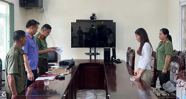 Cơ quan chức năng tống đạt quyết định khởi tố bị can và thi hành lệnh bắt tạm giam đối với Mai Thị Minh. Ảnh: Công an tỉnh Cao Bằng.