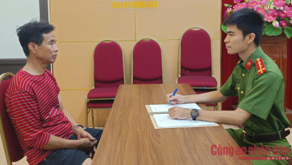 Công an phường Láng làm việc với đối tượng Hoàng Cao Sơn.