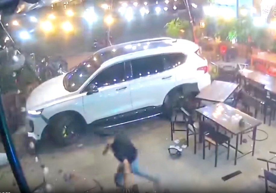 Ô tô do Sang điều khiển tông thẳng vào quán nhậu đang có nhiều người.