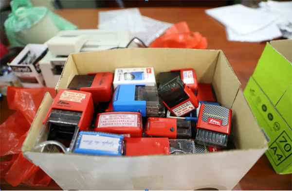 Sau khi tống đạt các Quyết định khởi tố, Phòng Cảnh sát kinh tế, Công an tỉnh đã tiến hành khám xét Công ty TNHH đầu tư và xây dựng Hiền Khiêm thu giữ nhiều con dấu, dấu chức danh,... liên quan đến hoạt động của Công ty Hiền Khiêm và nhiều tài liệu liên quan.