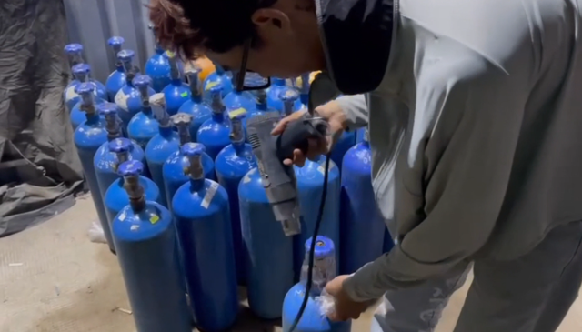 Tháng 7/2025, Tổ công tác Phòng Cảnh sát hình sự - Công an TPHCM phát hiện hai đối tượng đang thực hiện hành vi giao nhận các bình khí nén tại khu vực hầm để xe của một cơ sở kinh doanh trên địa bàn phường Phú Thuận.