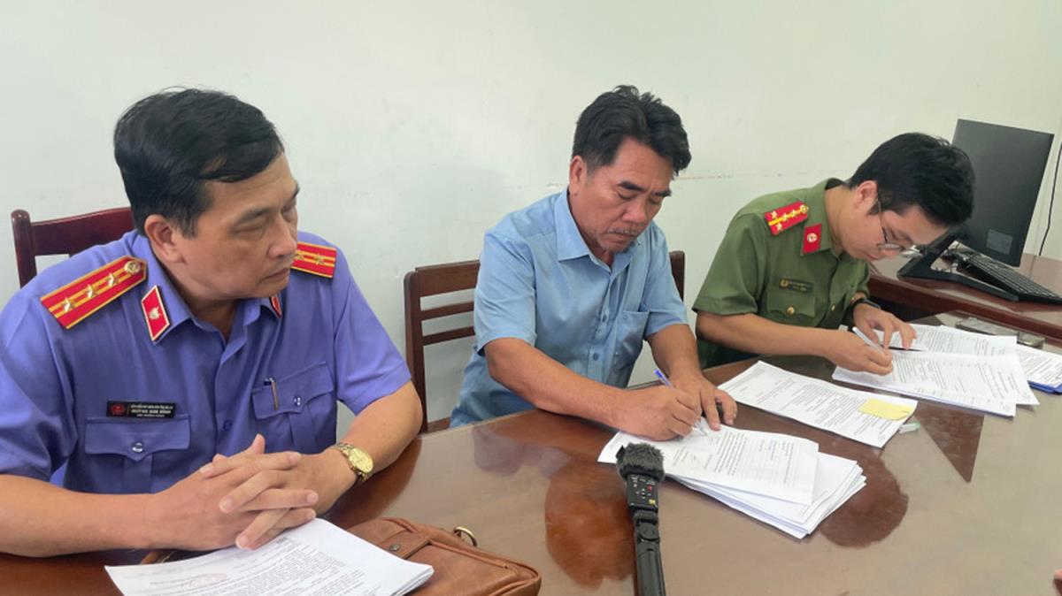 Đối tượng Tòng ký vào biên bản làm việc với cơ quan chức năng.