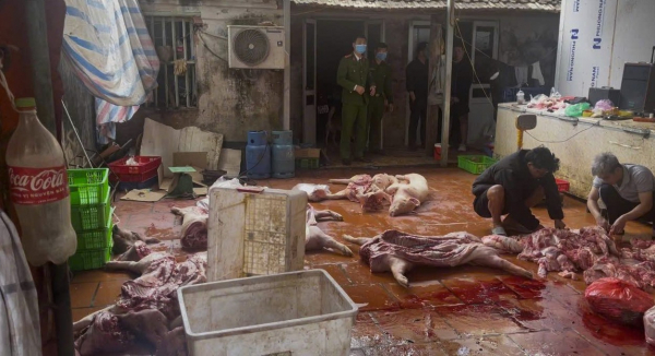 Qua đấu tranh, các đối tượng khai nhận toàn bộ số lợn và sản phẩm trên được thu mua từ các hộ dân có lợn chết hoặc mắc bệnh với giá rẻ, sau đó đưa về cơ sở tại nhà Nguyễn Khắc Huệ để giết mổ, phân loại và bán ra thị trường. Tổ công tác đã tiến hành lấy mẫu toàn bộ số sản phẩm trên và mẫu máu 9 con lợn để giám định. Kết quả, 100% mẫu đều dương tính với virus gây bệnh dịch tả lợn Châu Phi.