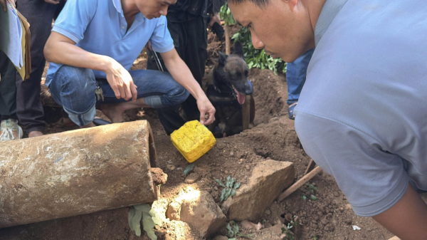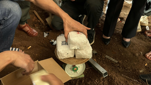 Lực lượng Ban chuyên án tiến hành đào bới, khám xét và thu giữ ma túy được đối tượng Vũ Đình Trọng cất giấu trong khuôn viên ở của mình.