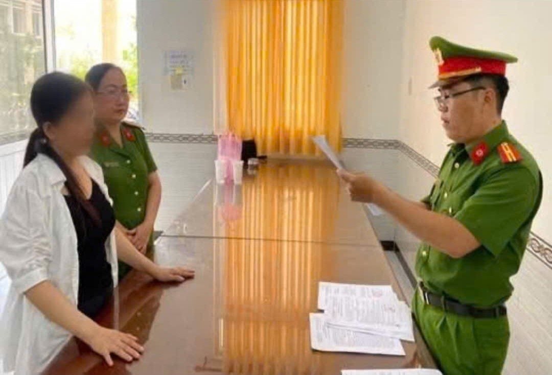 Cơ quan Công an đọc lệnh khởi tố bị can, bắt tạm giam Nguyễn Bạch Vân. (Ảnh CACM)