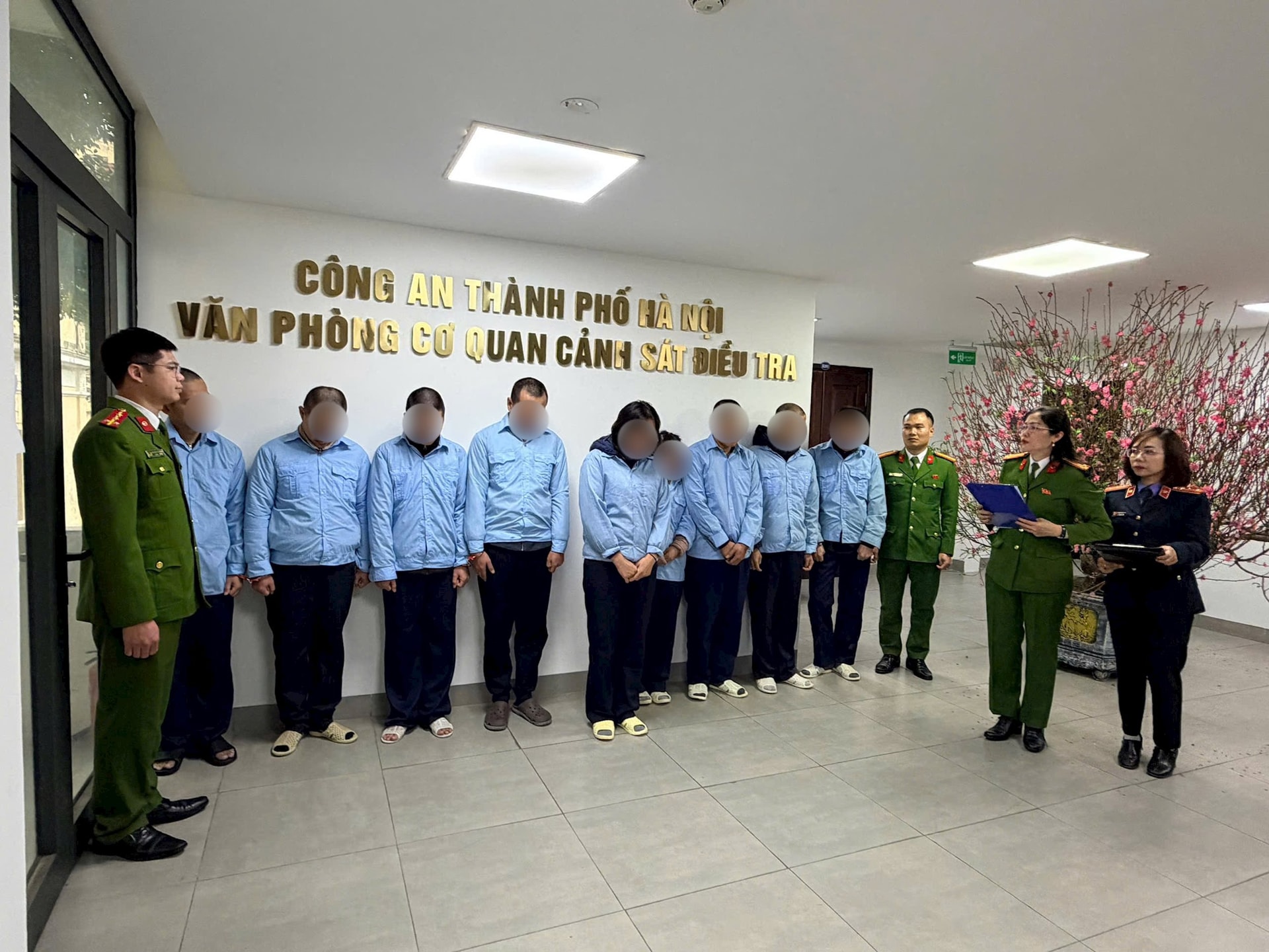 Trên cơ sở tài liệu, chứng cứ đã thu thập, Cơ quan Cảnh sát điều tra Công an TP. Hà Nội đã ra quyết định khởi tố vụ án, khởi tố 09 đối tượng về tội “Lừa đảo chiếm đoạt tài sản” theo khoản 4, Điều 174 Bộ luật Hình sự. Đồng thời, bước đầu làm rõ vai trò, hành vi của các nhóm đối tượng liên quan trong vụ án gồm: Nhóm chủ mưu, cầm đầu, điều hành thực tế; Nhóm giám đốc đứng tên pháp nhân, thực hiện việc ký khống hồ sơ, hợp thức hóa pháp nhân; Nhóm lập hồ sơ, kế toán, trực tiếp tham gia vào quá trình thực hiện các giao dịch tài chính liên quan.