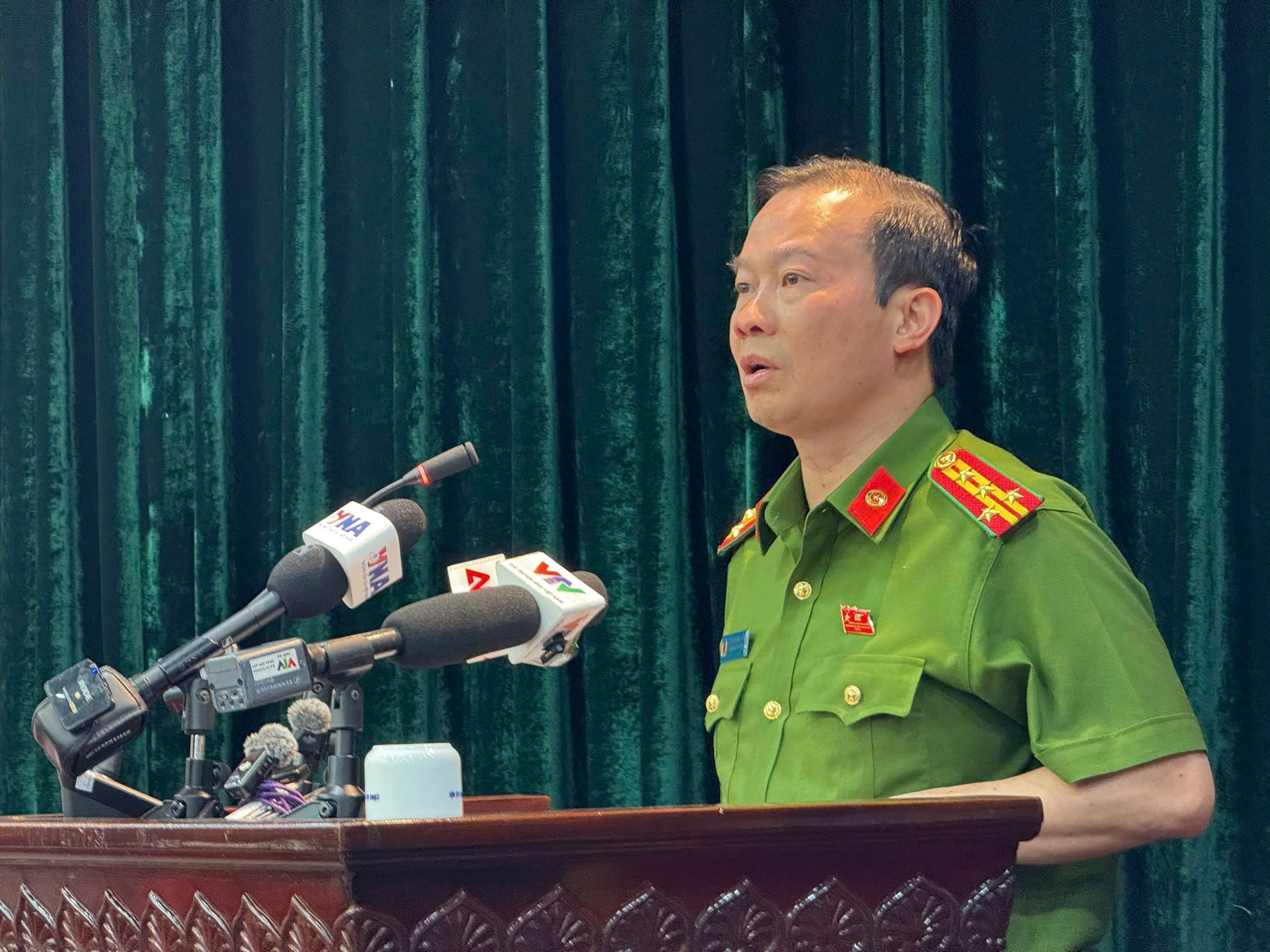 Đại tá Trần Thanh Tùng, Trưởng phòng PC02, Chánh văn phòng Cơ quan cảnh sát điều tra - Công an thành phố Hà Nội thông tin về vụ án. Ảnh: N.M