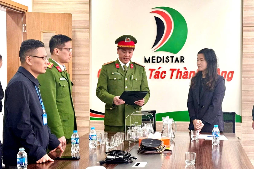 Khởi tố các đối tượng tại Công ty Medistar Việt Nam về hành vi "Sản xuất, buôn bán hàng giả là lương thực, thực phẩm, phụ gia thực phẩm" và "Vi phạm quy định về kế toán gây hậu quả nghiêm trọng". Ảnh: Tống Huệ