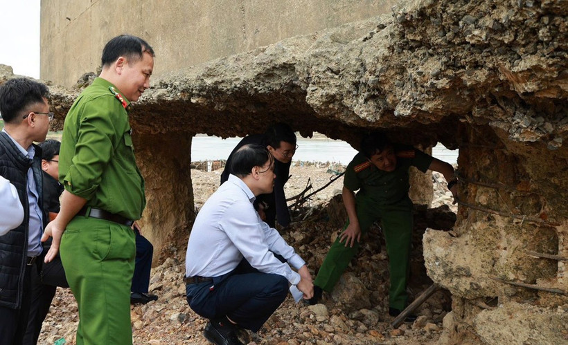 Cơ quan Cảnh sát điều tra Công an tỉnh Phú Thọ kiểm tra các trụ cầu Sông Lô.