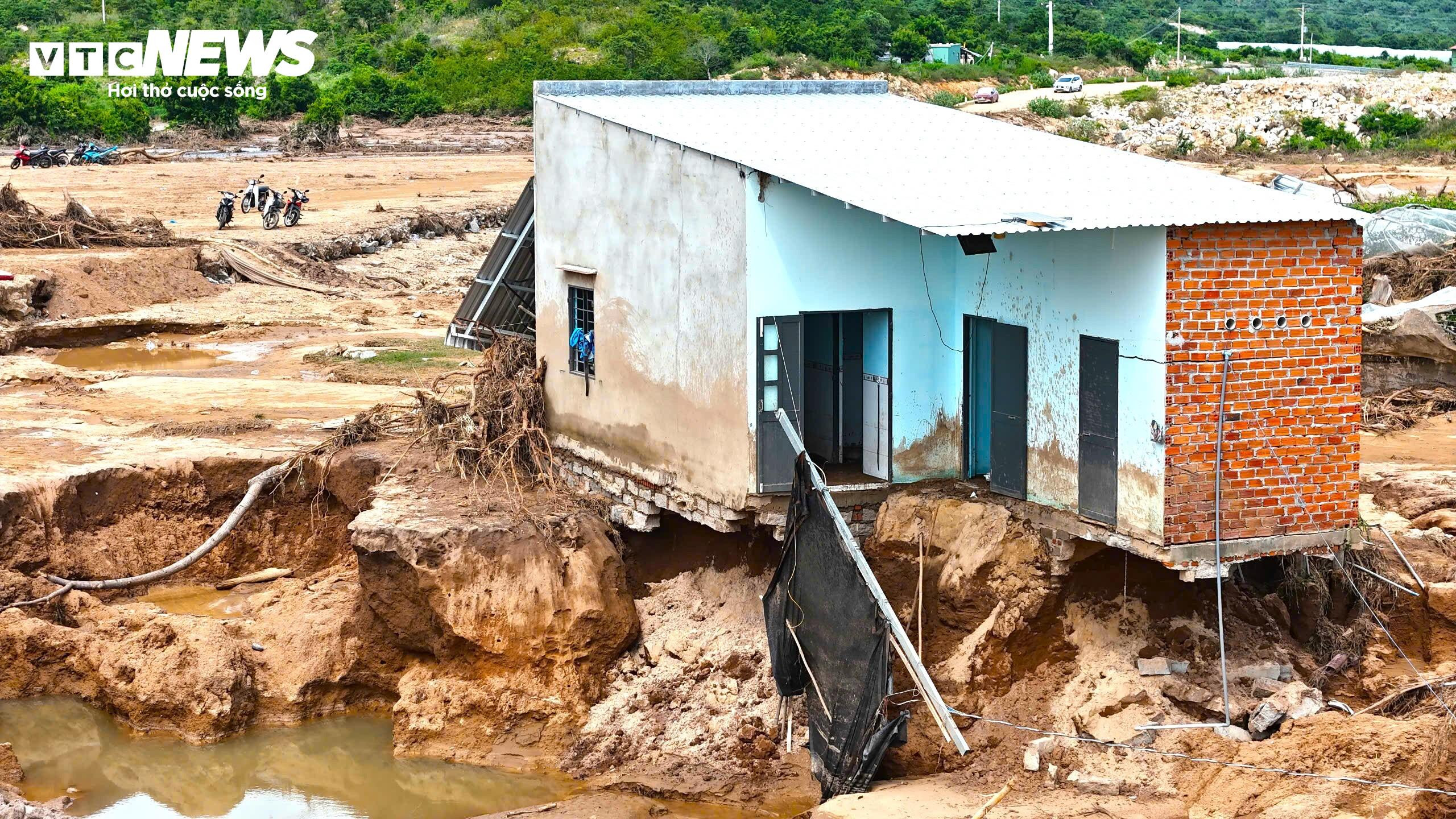 Vụ vỡ hồ chứa nước làm nhiều nhà cửa, vườn tược bị hư hại. Ảnh: THIÊN TRANG