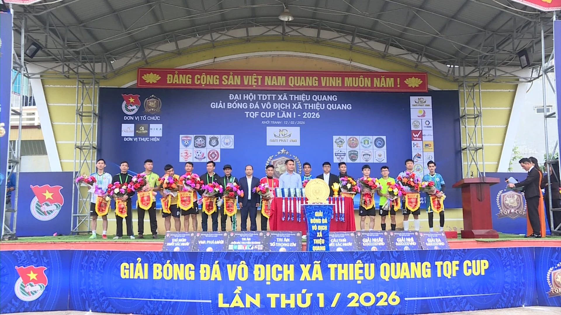 Theo kế hoạch, giải bóng đá vô địch xã Thiệu Quang TQF Cup năm 2026 sẽ khép lại vào ngày 22/2 với trận chung kết và lễ tổng kết, trao thưởng.