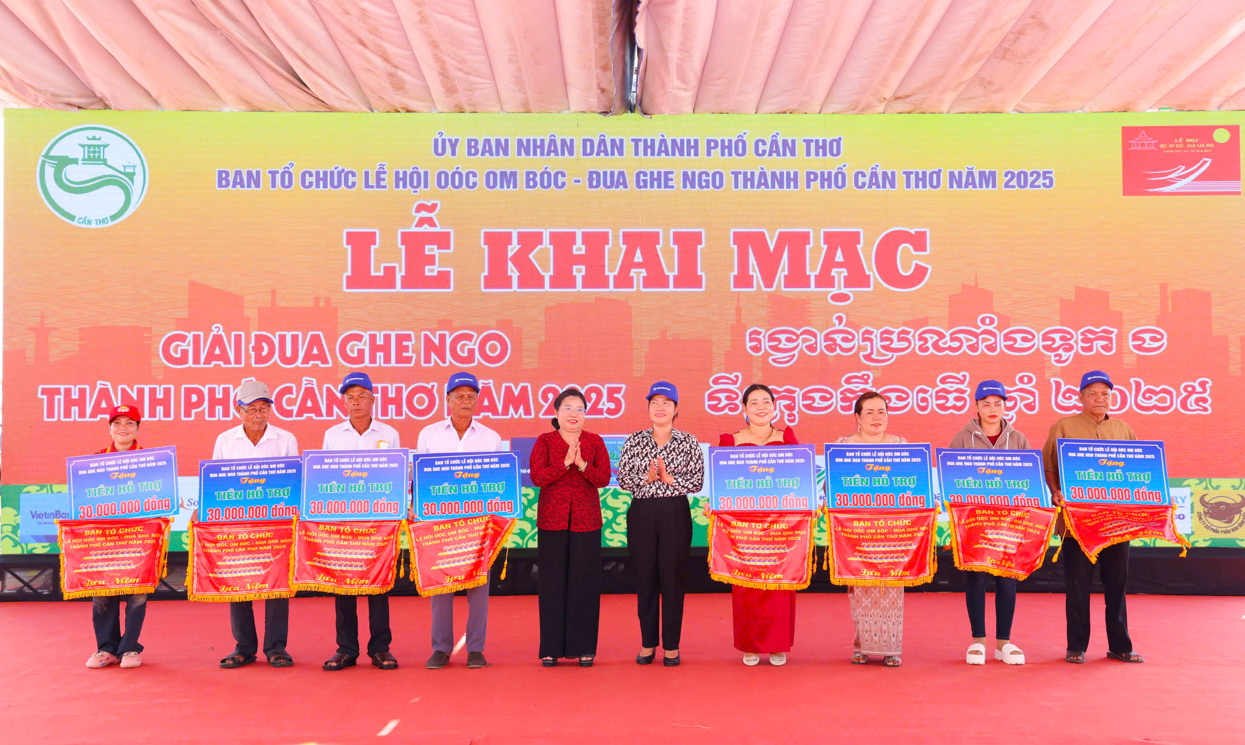 Lãnh đạo TP Cần Thơ trao hỗ trợ cho các đội ghe Ngo tham dự giải